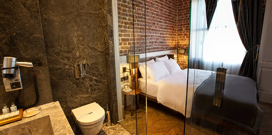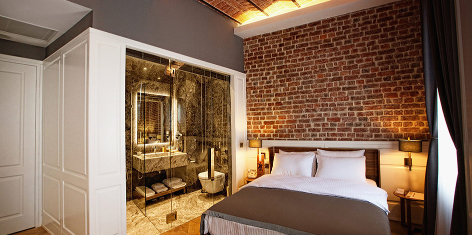 The deluxe rooms, perfect for couples, two friends or those who are traveling alone, are furnished with a king size bed, study desk and carefully selected furniture. With their original historical walls, 3-meter high ceilings and special parquet floors, they provide our guests a unique accommodation. After wandering the Historical Peninsula, you can enjoy our daily complimentary teas or coffees and fall in a comfortable sleep as you relax after a busy day.
