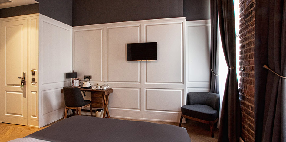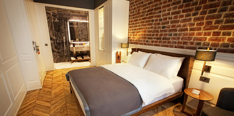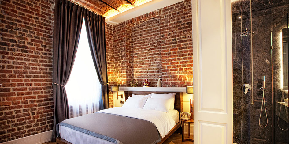 Our luxury rooms are located on the upper floors of our historical property. With original walls and brick ceilings, they provide our guests with a unique atmosphere. Our luxury rooms are furnished with a king size bed, armchair, study desk, carefully selected furniture and special knickknacks. After exploring Istanbul’s palaces and museums, in these historical rooms you can relax while enjoying our daily complimentary teas or coffees and fall into a sound sleep, awaking refreshed and energetic in the morning.